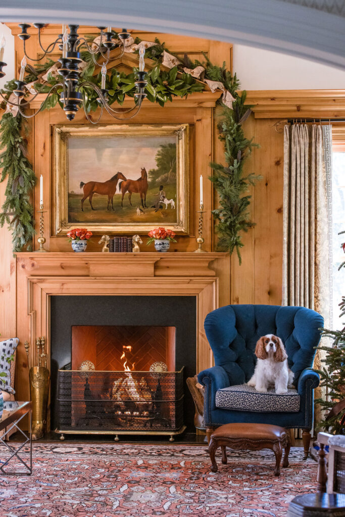 When it’s time to decorate for the holidays, designer Eric Ross gives “the field room,” one half of the family’s living room in his Nashville, Tennessee, home, a festive update that feels both refined and relaxed. Centered around a stately fireplace and a glittering Christmas tree, the space reflects his signature use of layered pattern and color, with rich browns and soft blues creating a sophisticated twist on classic holiday style.